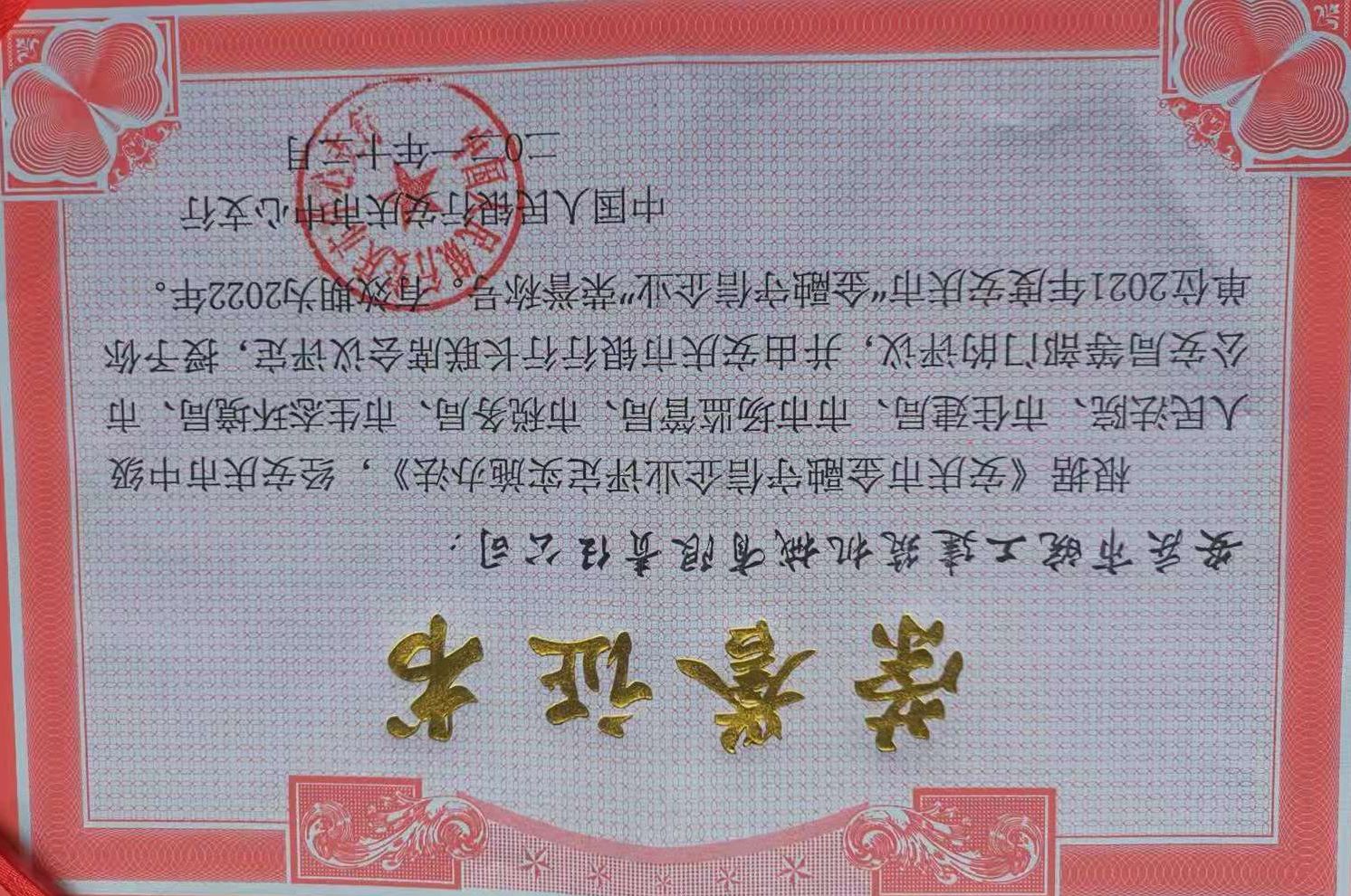皖工榮獲2021年度安慶市“金融守信企業(yè)”榮譽稱號
