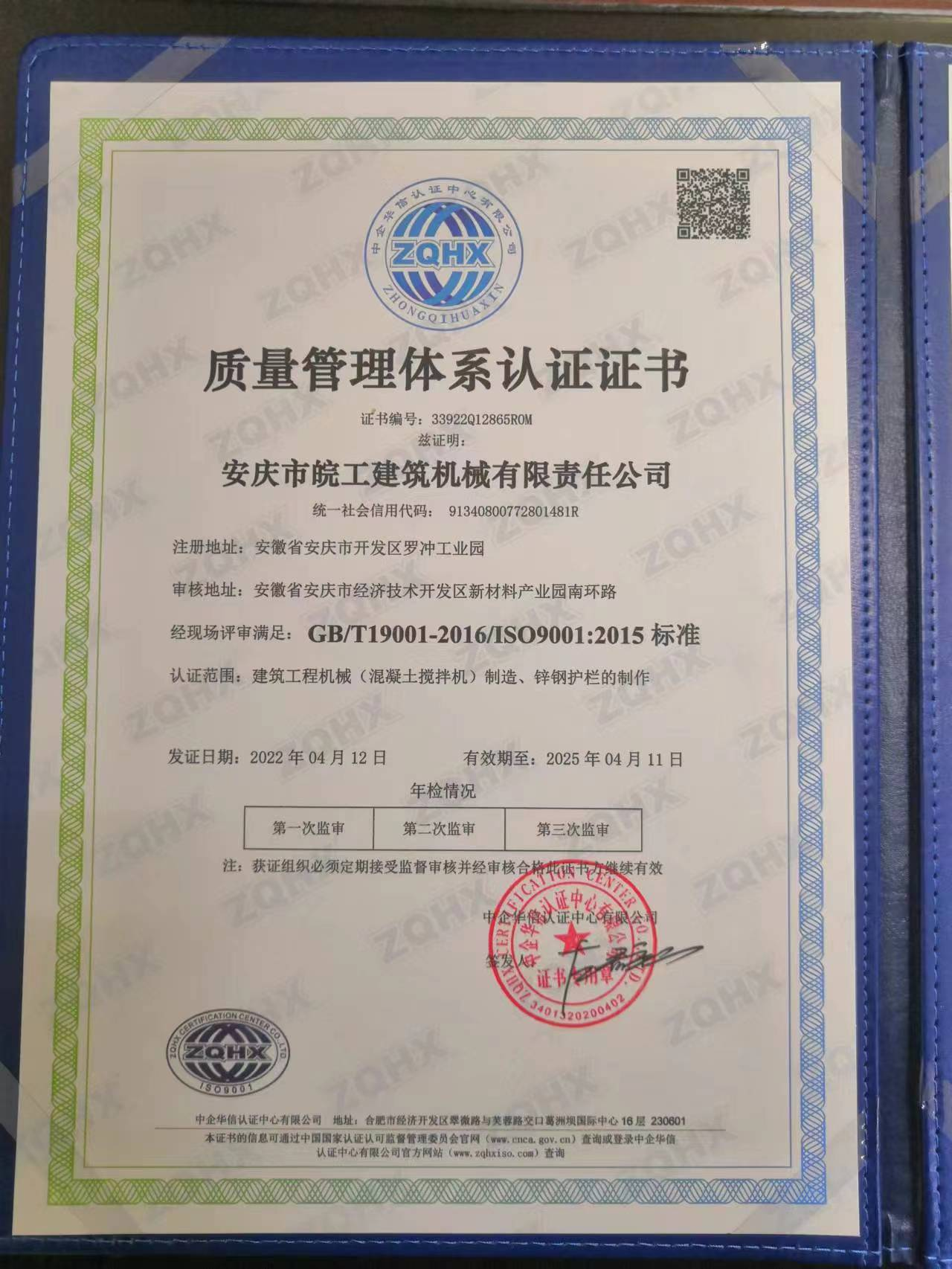 質(zhì)量管理體系認(rèn)證證書中文版2022年